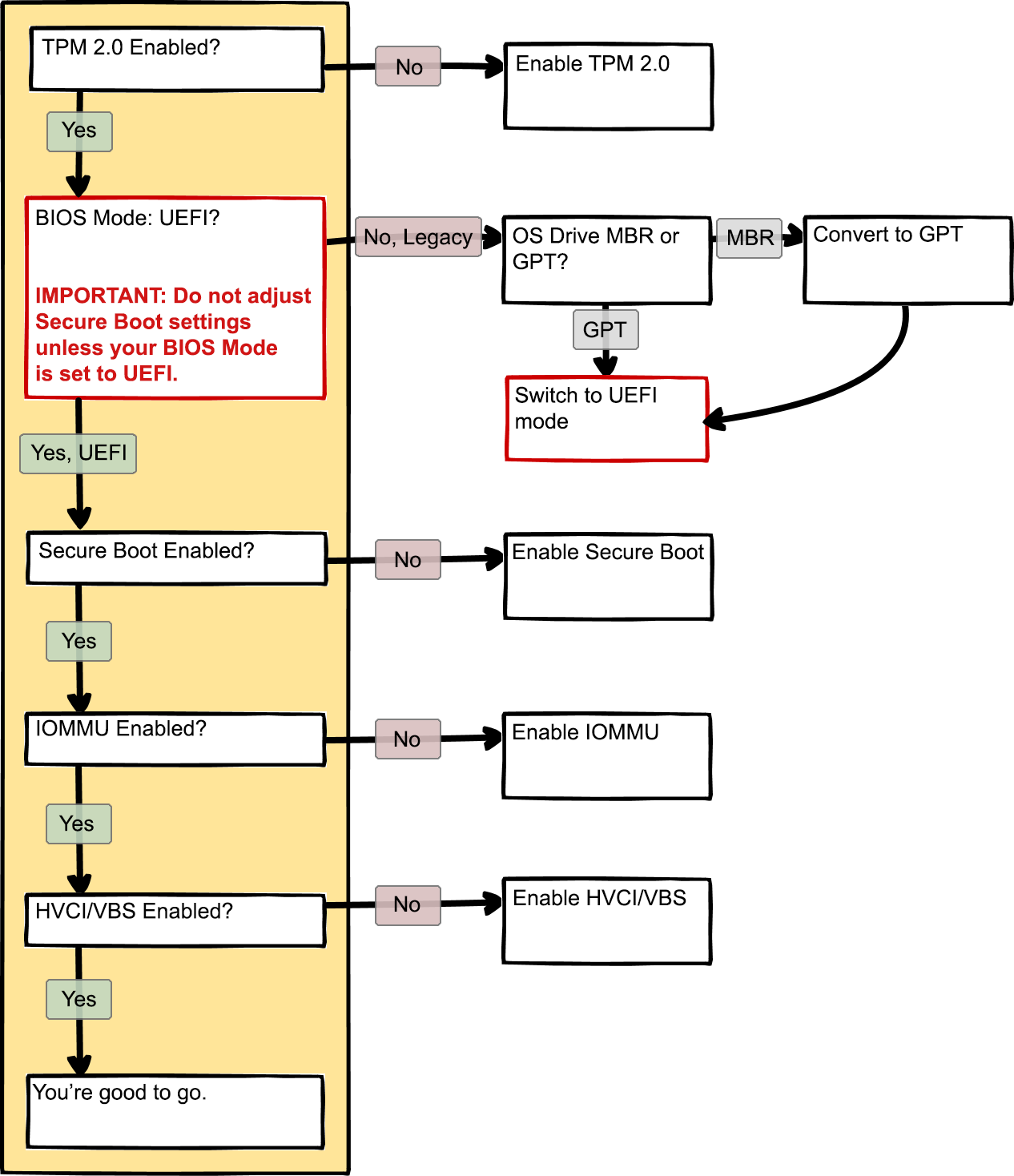 - Confira o estado da Inicialização Segura e o modo da BIOS.